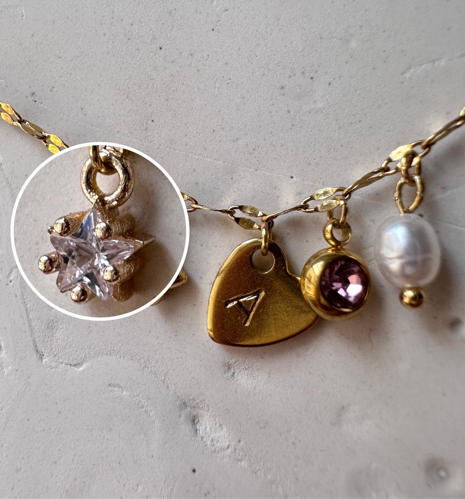 Radiate elegance with the Copper Zircon Star Charm, featuring a dazzling star-cut zircon at its center. Plated in a rich blend of 18K and 14K gold, it shines with a KC golden hue that elevates any jewellery piece.
