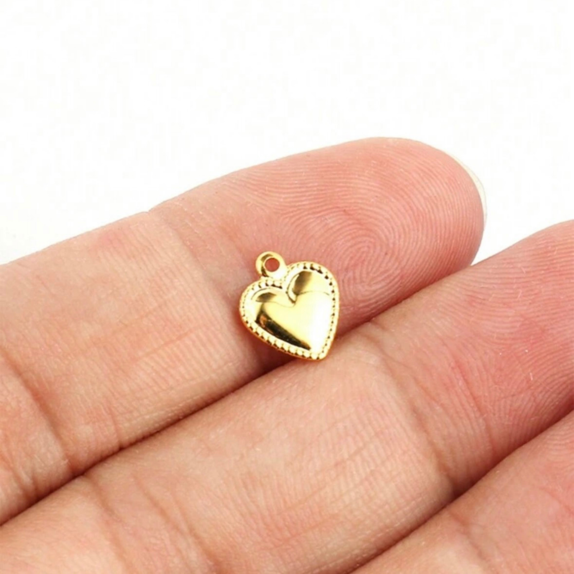 A delicate hollow shell heart charm crafted from stainless steel with a golden finish.