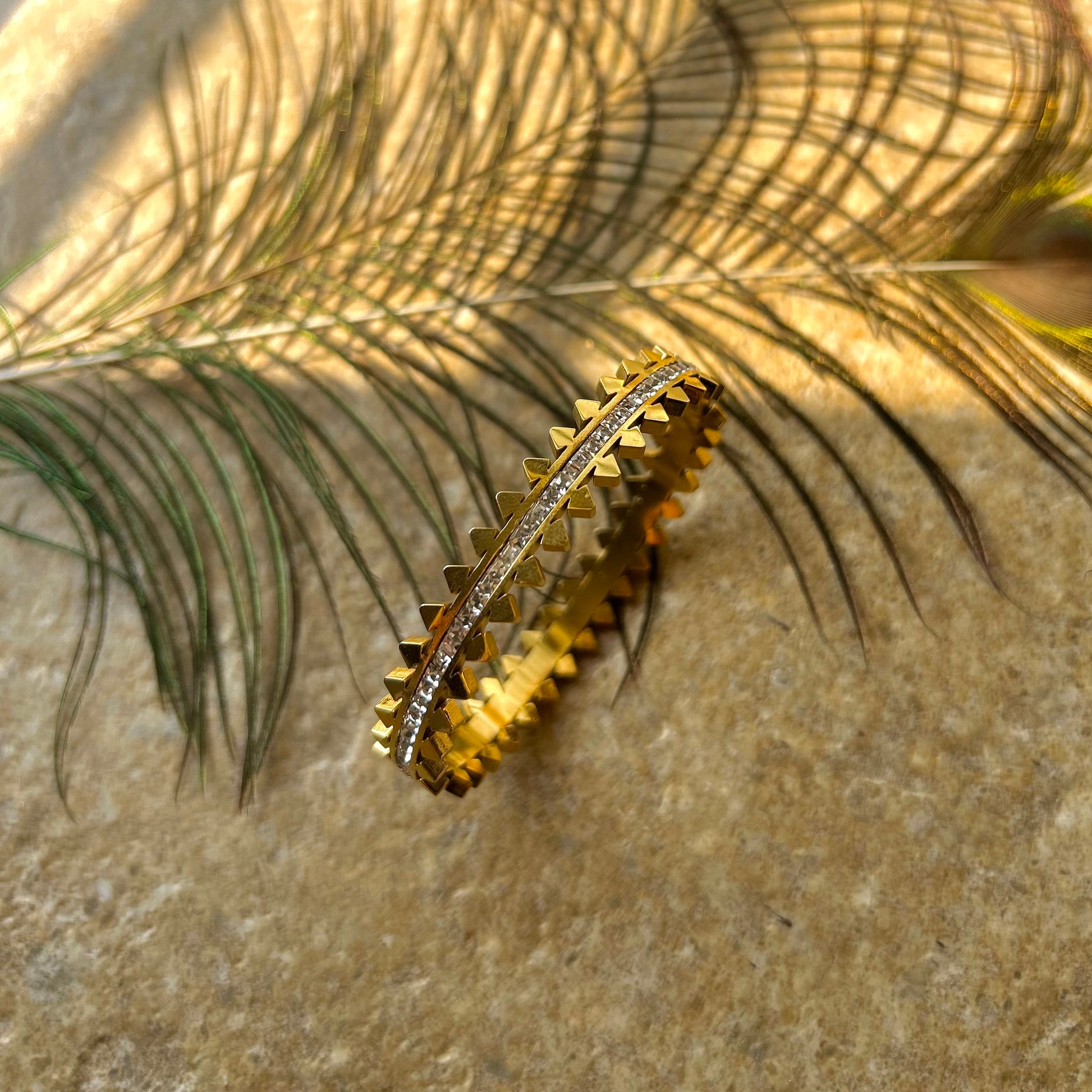 Make a bold statement with the Nouveau Zirconia Bangle, a perfect fusion of edgy design and timeless elegance. Crafted from high-quality stainless steel, this waterproof and tarnish-resistant bangle ensures lasting brilliance and durability.